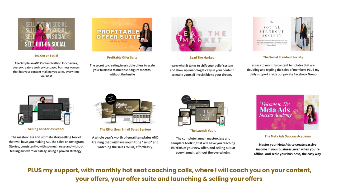 The Social Standout Society - access to monthly content templates that are doubling and tripling the sales of members PLUS my daily support inside our private Facebook Group